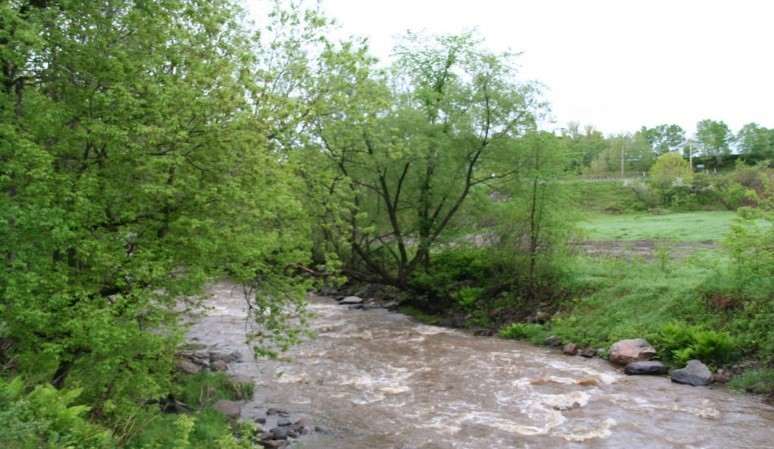 Localisation : Accès via la rue De Chavigny. Terrain riverain de la rivière La Chevrotière avec accès au fleuve.